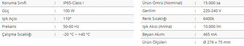 ACK 100W 6500K Yüksek Tavan Armatürü