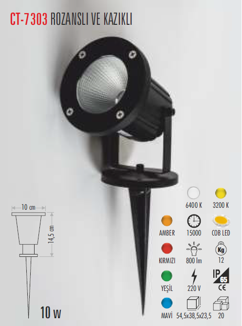 Cata 10W Kazıklı Led Bahçe Aydınlatma CT-7303 Beyaz