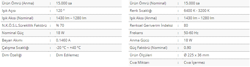 Ürün Genel Özellikleri