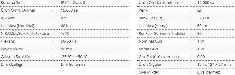 Ürün Genel Özellikleri