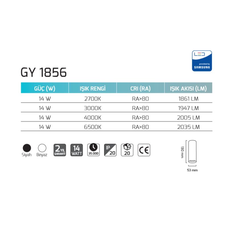 Goya 14 Watt 4000K Sarı Işık Sıva Üstü Spot - GY 1856-20