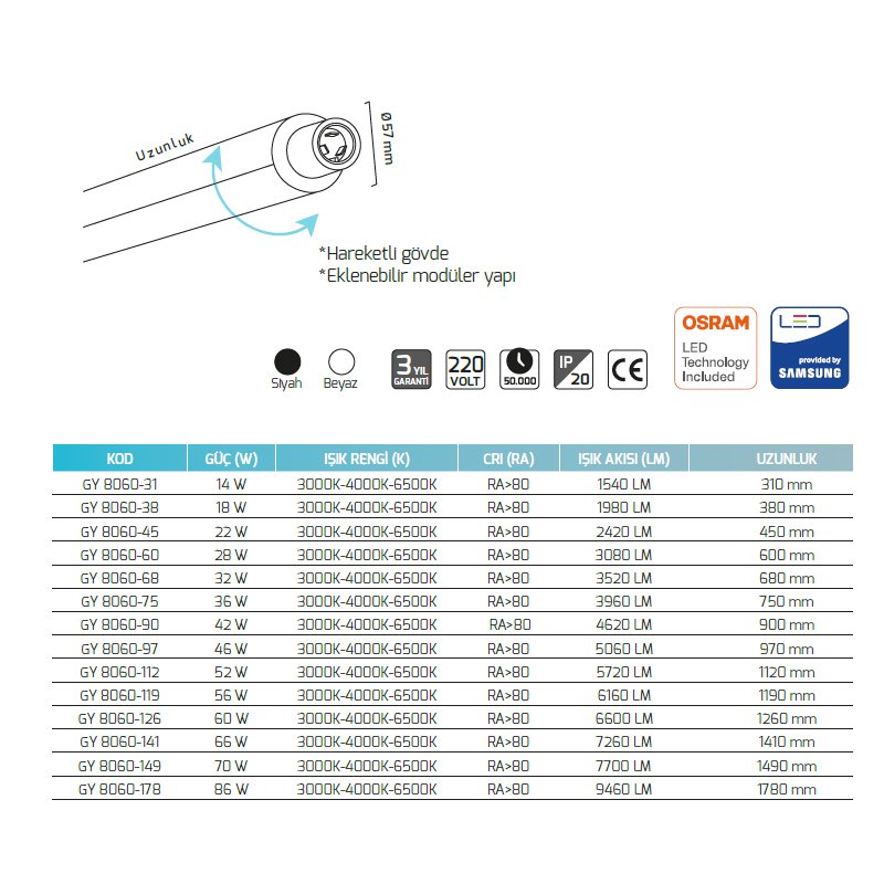 Goya 22w Sıva Üstü Led Linear Armatür GY 8060-45
