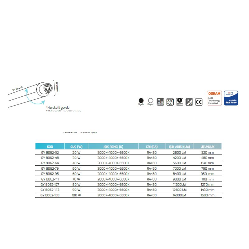 Goya 90w 143m Sıva Üstü Linear Led Armatür GY 8062-143