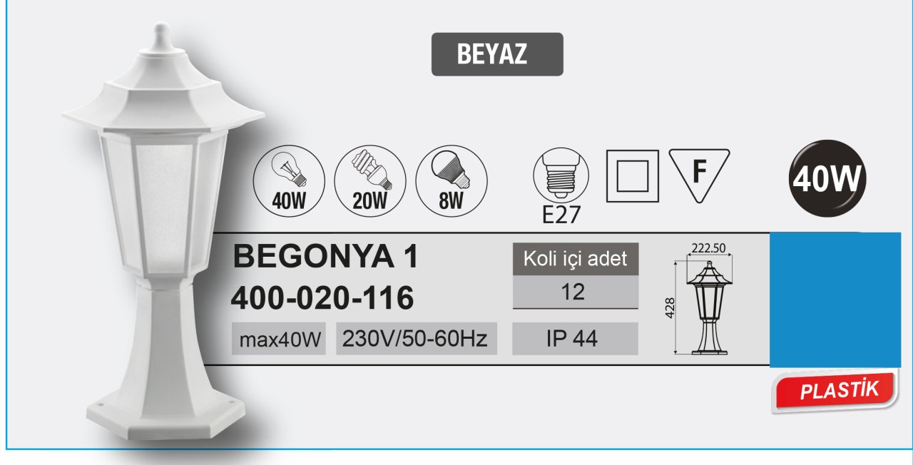 Horoz Begonya 2 Bahçe Armatür Aplik ( Beyaz) 400.010.116