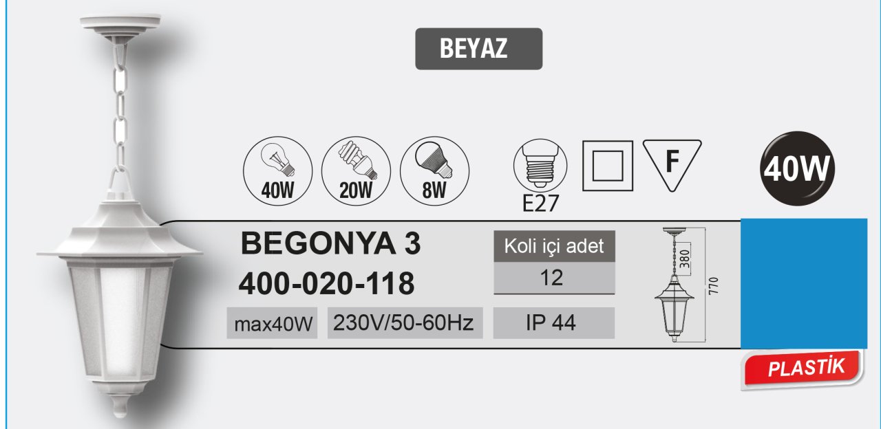 Horoz Begonya 3 Bahçe Armatür Aplik ( Beyaz) 400.010.118