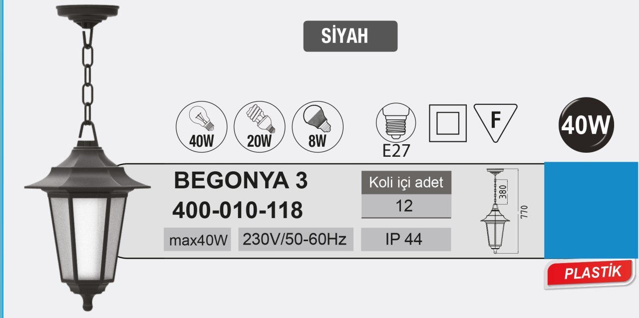 Horoz Begonya 3 Bahçe Armatür Aplik ( Siyah ) 400.010.118