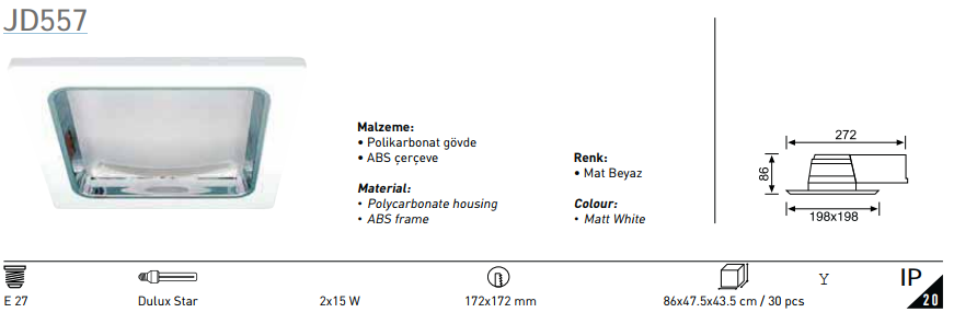 Jupiter 2x14W Downlight Yatay E27 Duylu PC Camlı JD557