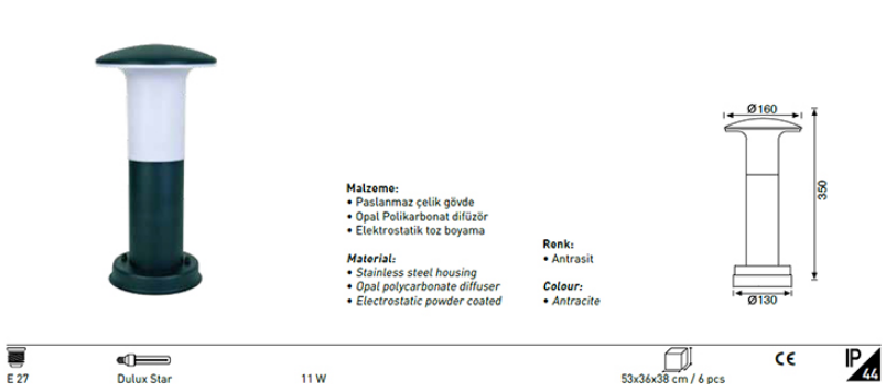 Jupiter Bahçe Baba Bollard Aydınlatma 35cm E27 Duylu JG948 AN