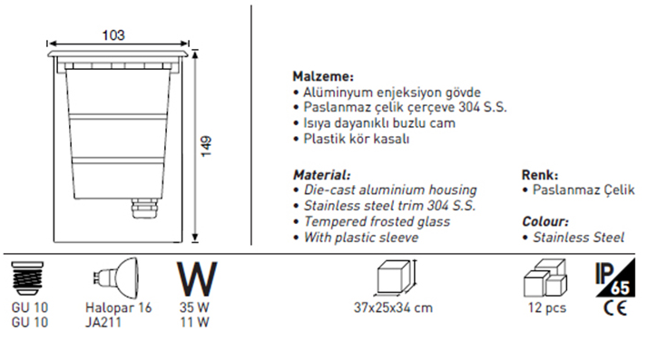 ACK 22 cm x 9 cm Bahçe Sarkıt Armatür
