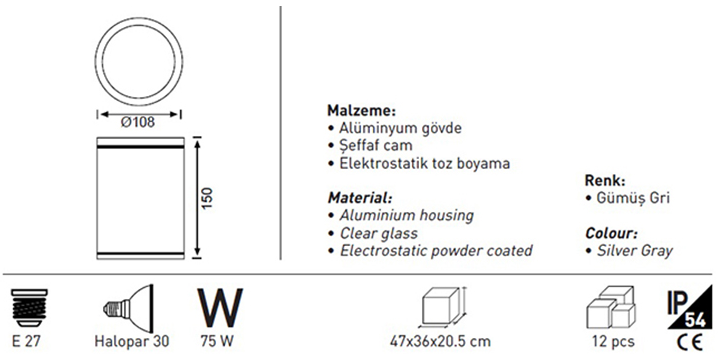 ACK 22 cm x 9 cm Bahçe Sarkıt Armatür