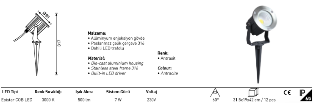 Jupiter Led Bahçe Spot Kazıklı - Işık rengi 3000K LG987