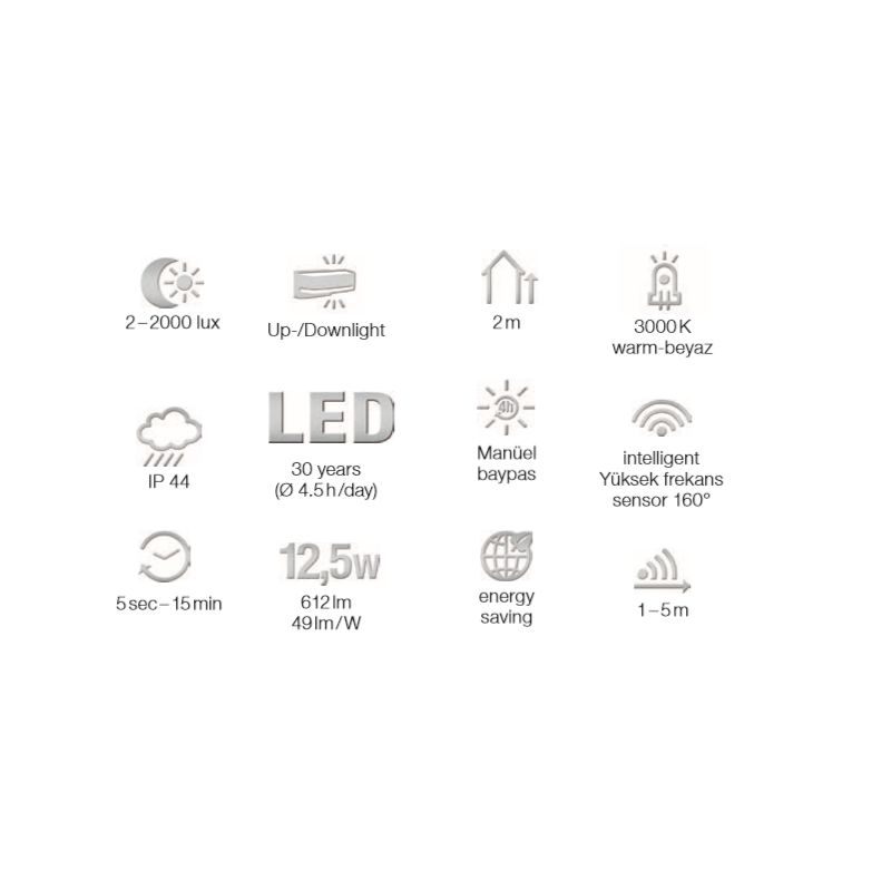 Yüksek kaliteli bir ürün akıllıca ve inceden inceye düşünülür ve dayanıklı materyalden imal edilir. Değeri, bugünün ötesine uzanır, süreklilik ve istikrar sunar. L 810 iHF dış mekan SensorLight, akıllı teknolojiyi form ve fonksiyona dönüştüren bir aşağı ve yukarı LED lambasıdır. İlk defa, bir lambanın sensörünü tamamen görünmez hale getirmeyi başardık – ama bu arada birinci sınıf tasarım ve teknolojik mükemmellikten ödün de vermedik. Şaşırtıcı yukarı ve aşağı yönlü aydınlatma için. Yeni: 4 saatlik manüel baypas opsiyonu.