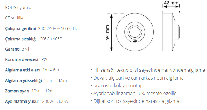 360 derece hareket sensörü sayesinde her yönden algılama