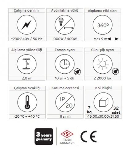 360 derece algılamaSıva üstü kolay montajAyarlanabilir zaman, lüks, mesafe özelliğiDijital kontrol sayesinde hatasız algılama