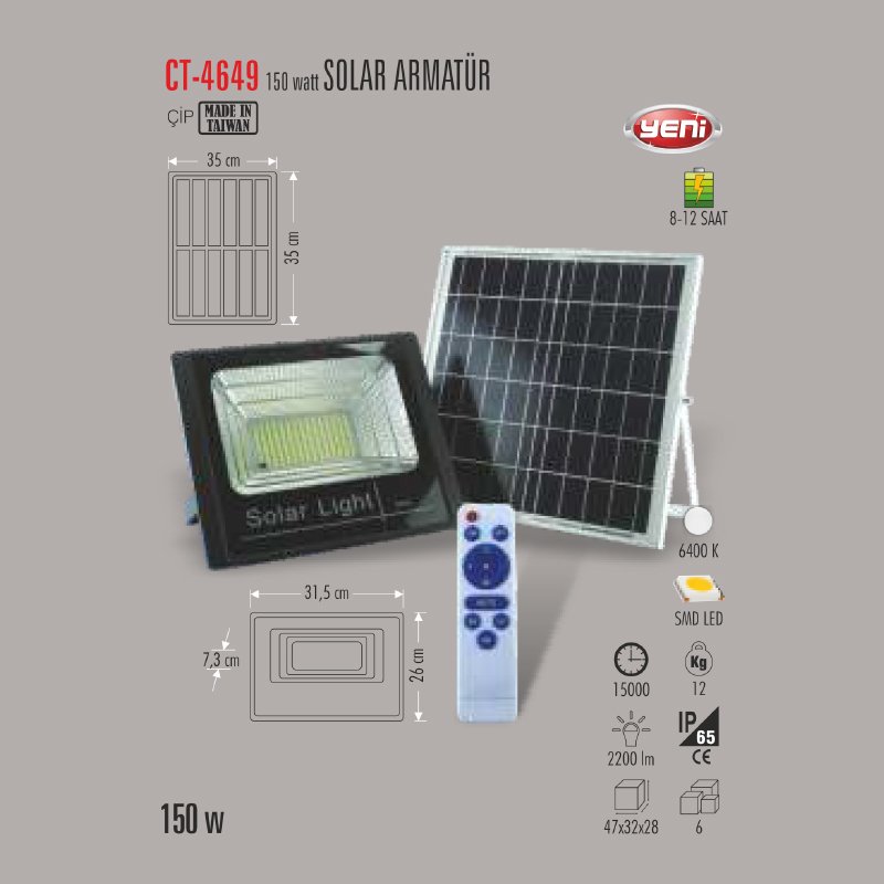 Cata 150W SOLAR Led Sokak Projektör CT-4649 Beyaz Işık