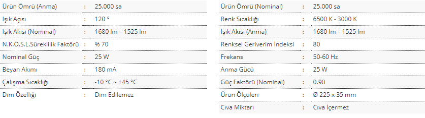 Ürün Genel Özellikleri