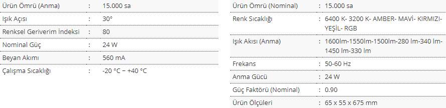 Ürün Genel Özellikleri