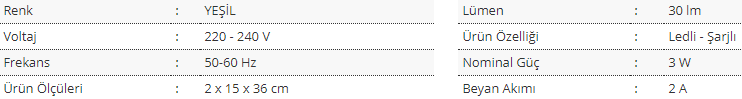 Ürün Genel Özellikleri