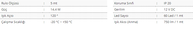 | NOT : Şerit Ledler 12 Volt ile çalışır. Şerit ledleri çalıştırmak için Led Trafosu almanız gerekir. | ||||||