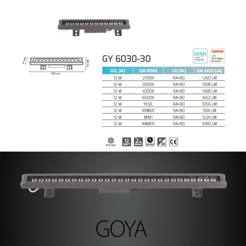 Goya 12W 3000K Sarı Işık Wallwasher GY 6030-30
