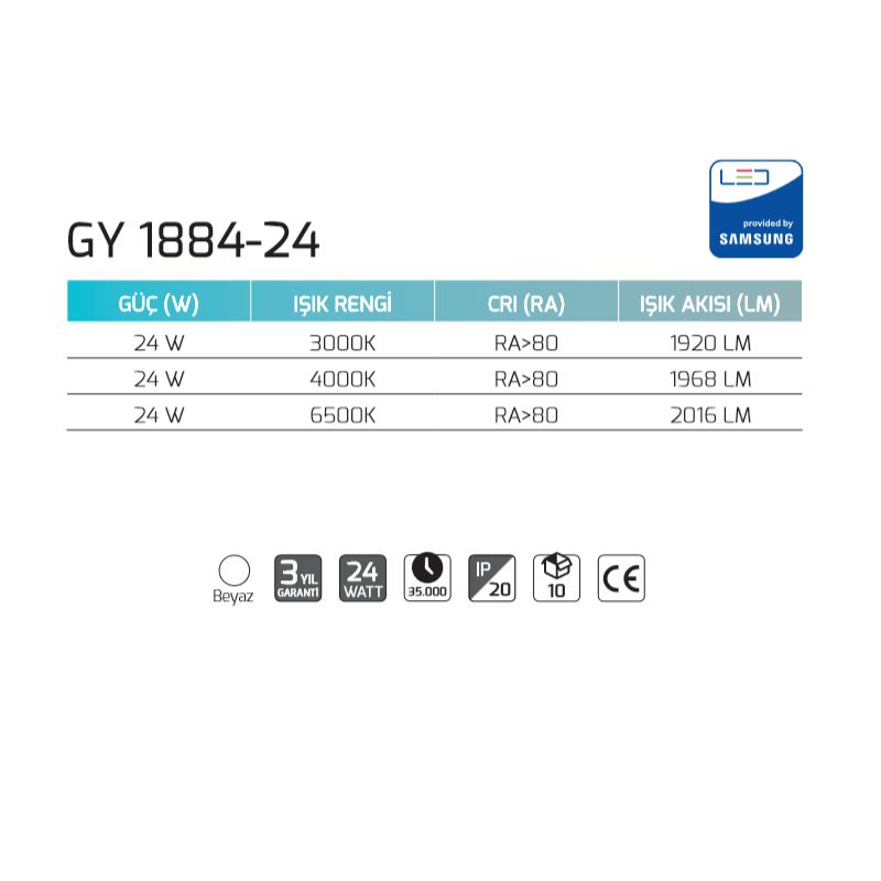 3000 Kelvin Sarı Işık - 1920 Lümen