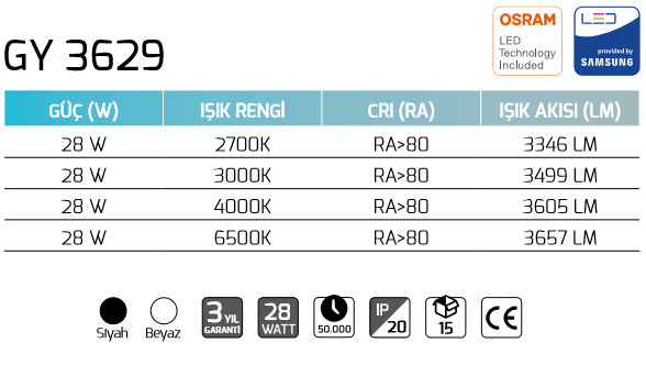 Goya 28W 3000K Sarı Işık Led Ray Spot GY 3629
