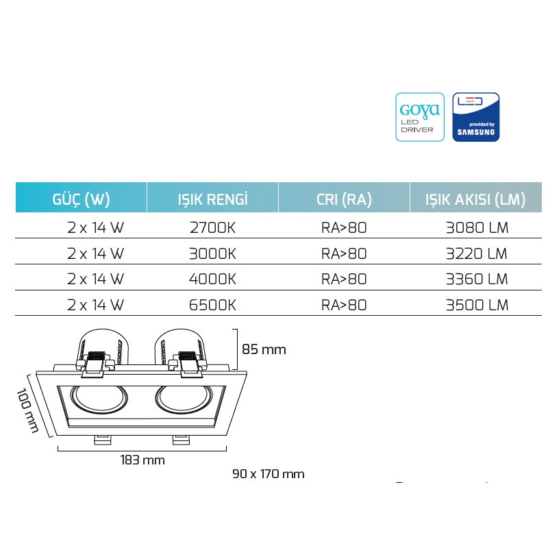 - RENK SIÇAKLIĞI : 2700K - 3000K - 4000K - 6500K