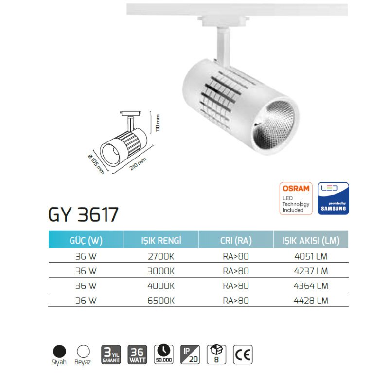 Goya 36W 6500K Beyaz Işık Ray Tipi Led Monofaze Soketli GY 3617