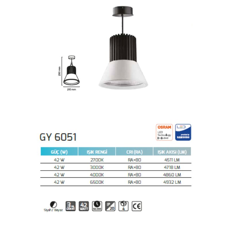 Goya 42W 3000K Sarı Işık Sarkıt Armatür GY 6051
