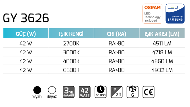 Goya 42W 4000K Gün Işığı Ray Tipi Led Monofaze Soketli GY 3626