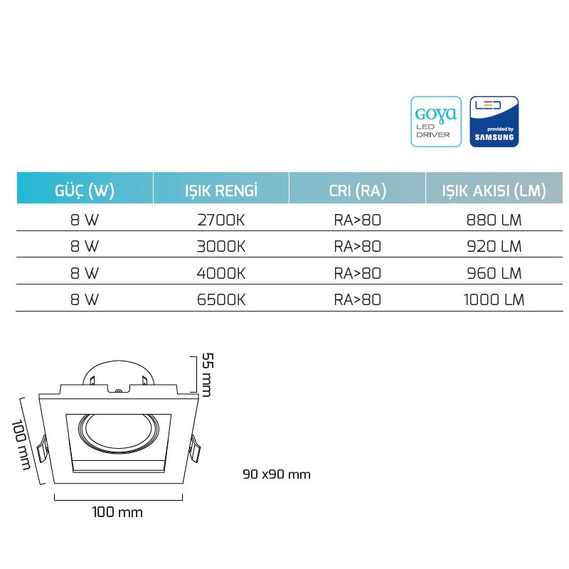 - Güç : 8 Watt Triac Dim Dimlenebilir