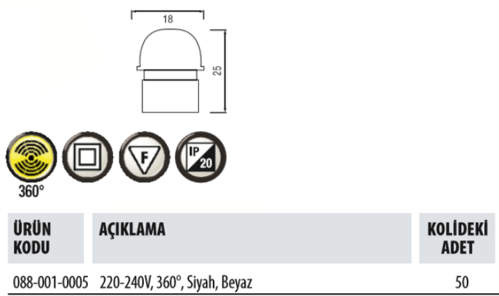 360 Tavan Tipi Hareket Sensörü - SIva Altı Nade