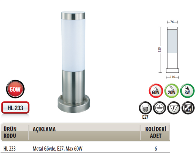 Horoz 60W Bahçe Armatürü E27 Duy - Defne-3 075 004 0003