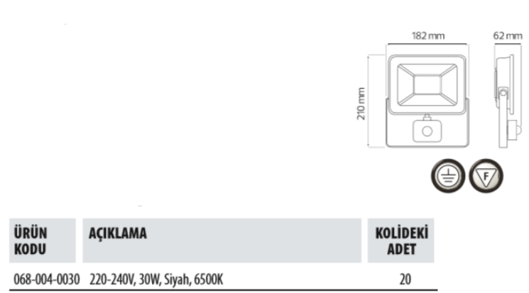 Horoz 6400K Beyaz Işık 30 Watt Sensörlü Puma S-30 Projektör - 068 004 0030