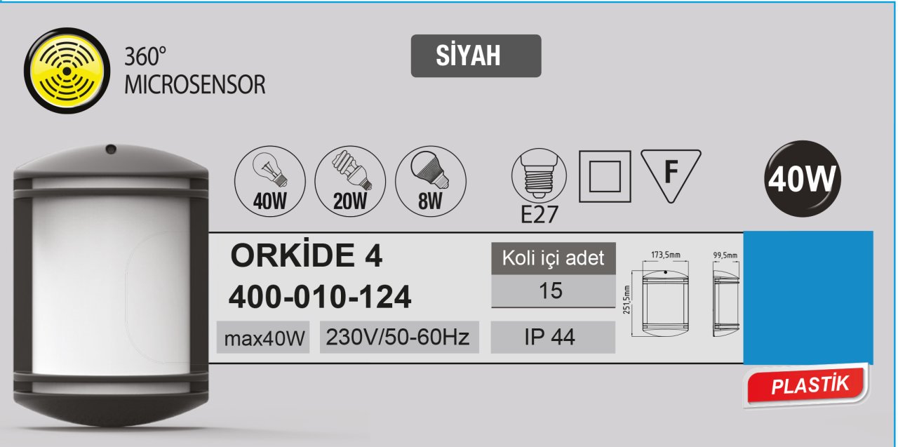 Horoz Orkide 4 Bahçe Armatür Microsensor 360° ( Siyah ) 400.000.124