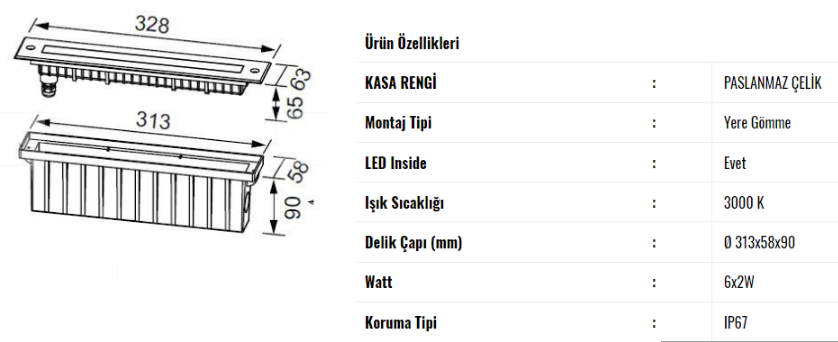 Jupiter 6x2 Watt Led'li Yere Gömme WallWasher Armatür - LG926