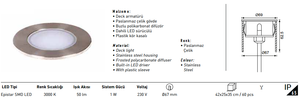 - IP65 Koruma Sınıfı