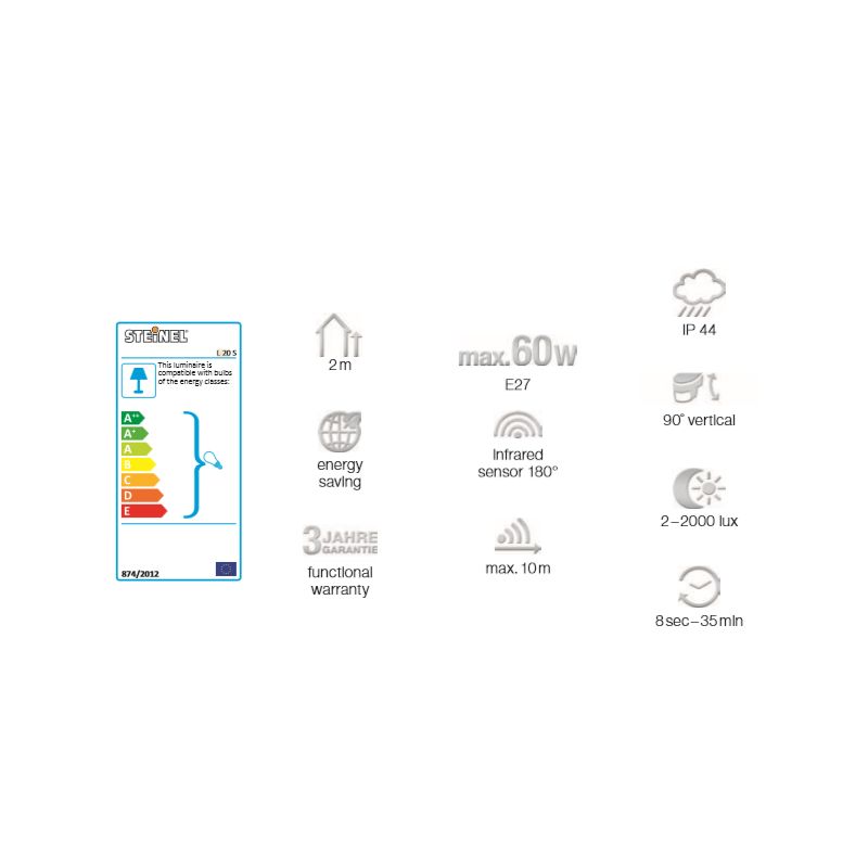 Girişlerde, balkonlarda ve terasta L 22 pürüzsüz hatları ve güvenilir STEİNEL sensör lü lambası ile dış mekanlarınızı kontrollü bir şekilde aydınlatın. Şaşırtıcı derecede iyi ışık değeri, paslanmaz çelik çerçevesi ve saydam tabanıyla davetkar bir tavırla ışık ortama yayılıyor. Klasik akkor lamblarla E27 duy ile 60 W maksimum, LED ve enerji tasarrufl u ampüllerde 20 W maksimum güç ile kullanabilirsiniz.