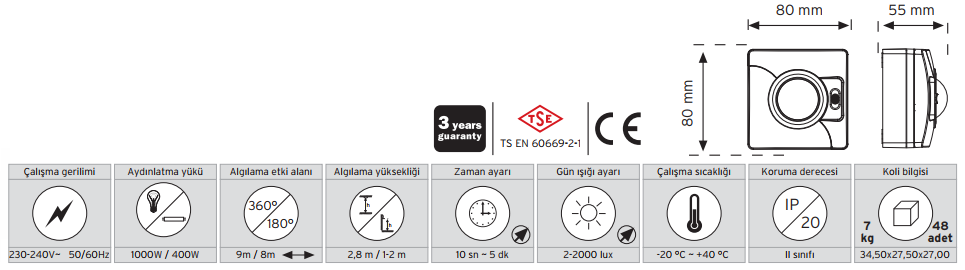 Üç konumlu anahtar ile AUTO, ON, OFF mod seçenekleri